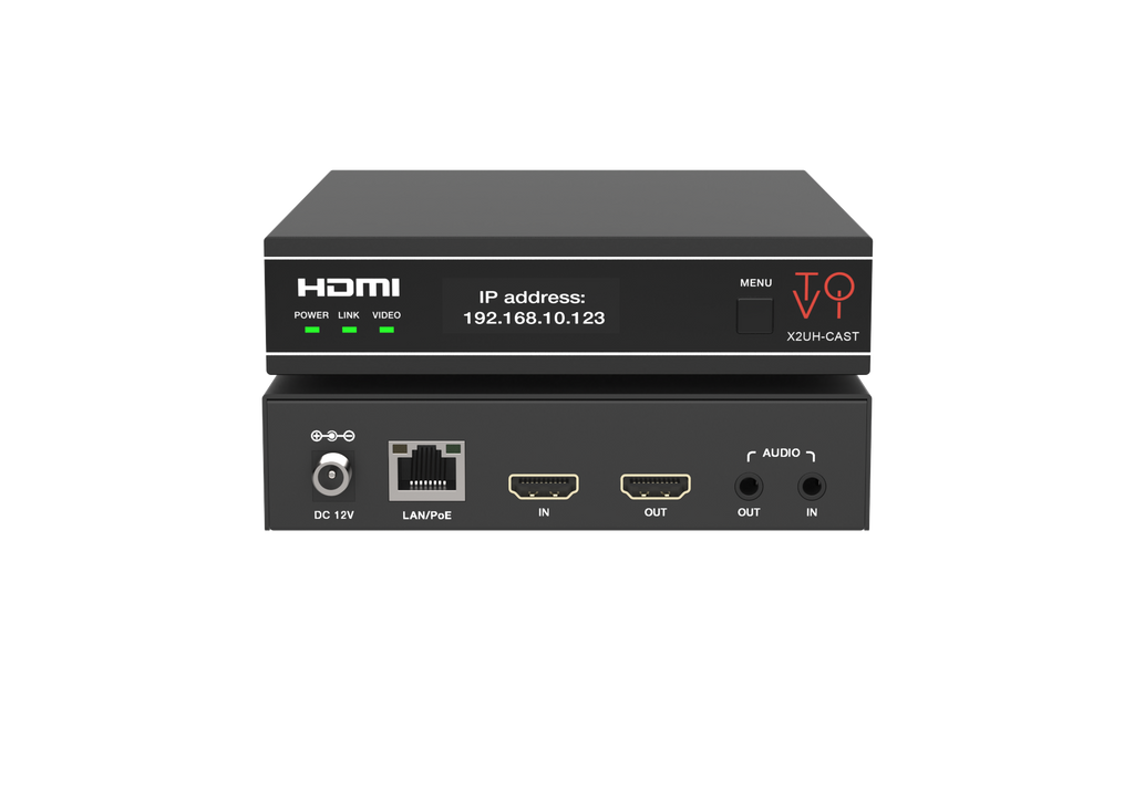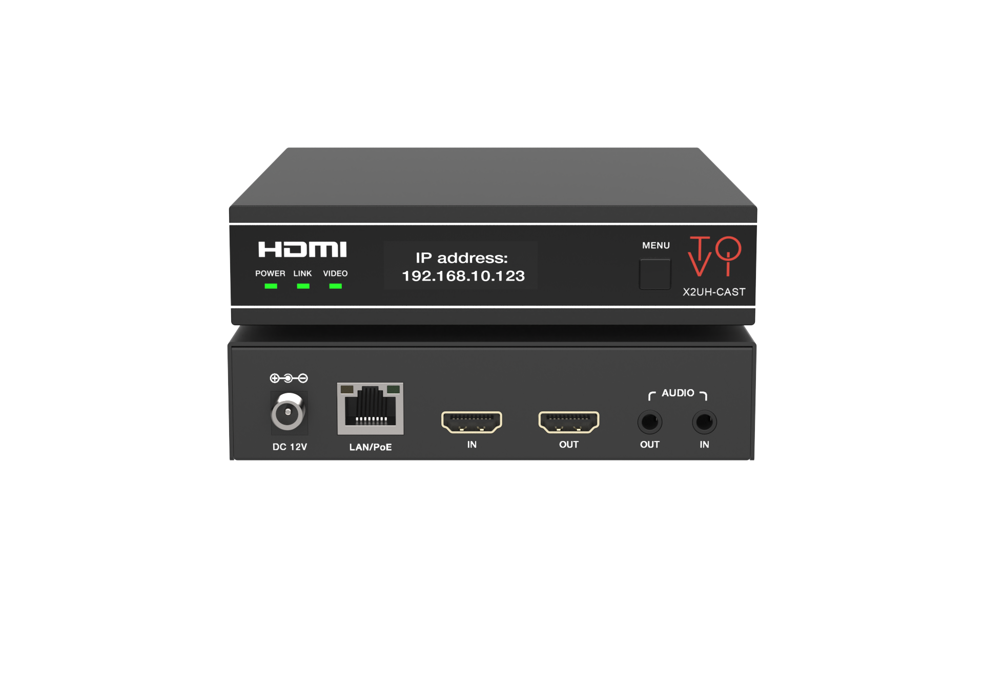 X2UH-CAST is a high-performance AV-over-IP encoder designed for professional AV distribution. Based on H.265/H.264 compression technology, it enables visually lossless 4K@60Hz (4:4:4) video transmission over a 100M/1G Ethernet network. Supporting three simultaneous streams (4K@60Hz H.264/H.265, 1080P@30Hz H.264, and 720P@50Hz JPEG), it ensures maximum flexibility for streaming, preview, and monitoring applications
