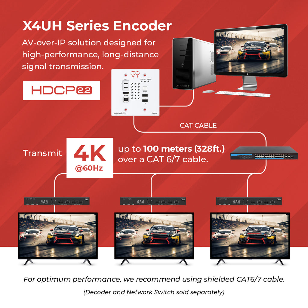 - CAT6, CAT7: We recommend you use shielded CAT6 cables & High-Quality HDMI Cables for optimum performance