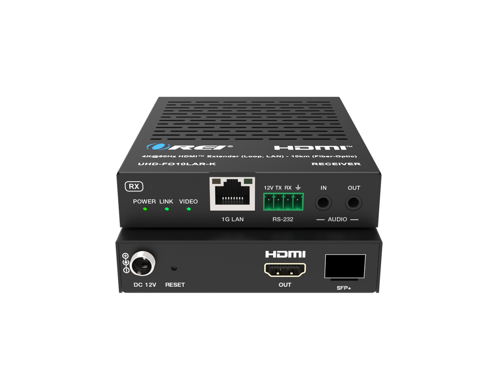 The UHD-FO10LAR-K is a high-performance HDMI over Fiber Optic Extender built on SDVoE technology, designed for long-distance, zero-latency AV transmission. It enables uncompressed 4K@60Hz HDR video extension up to 10 km over single-mode fiber or up to 300 meters over multi-mode fiber, making it ideal for mission-critical commercial environments. The Transmitter includes an HDMI loop-out for local monitoring, while the Receiver offers video scaling to match the display’s capabilities. Both units provide 1G LAN passthrough for network extension and include 3.5mm analog audio input/output for embedding or extracting audio as required.