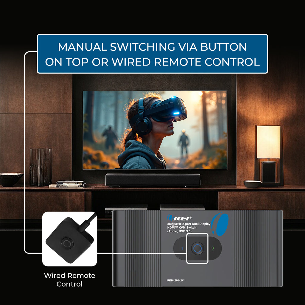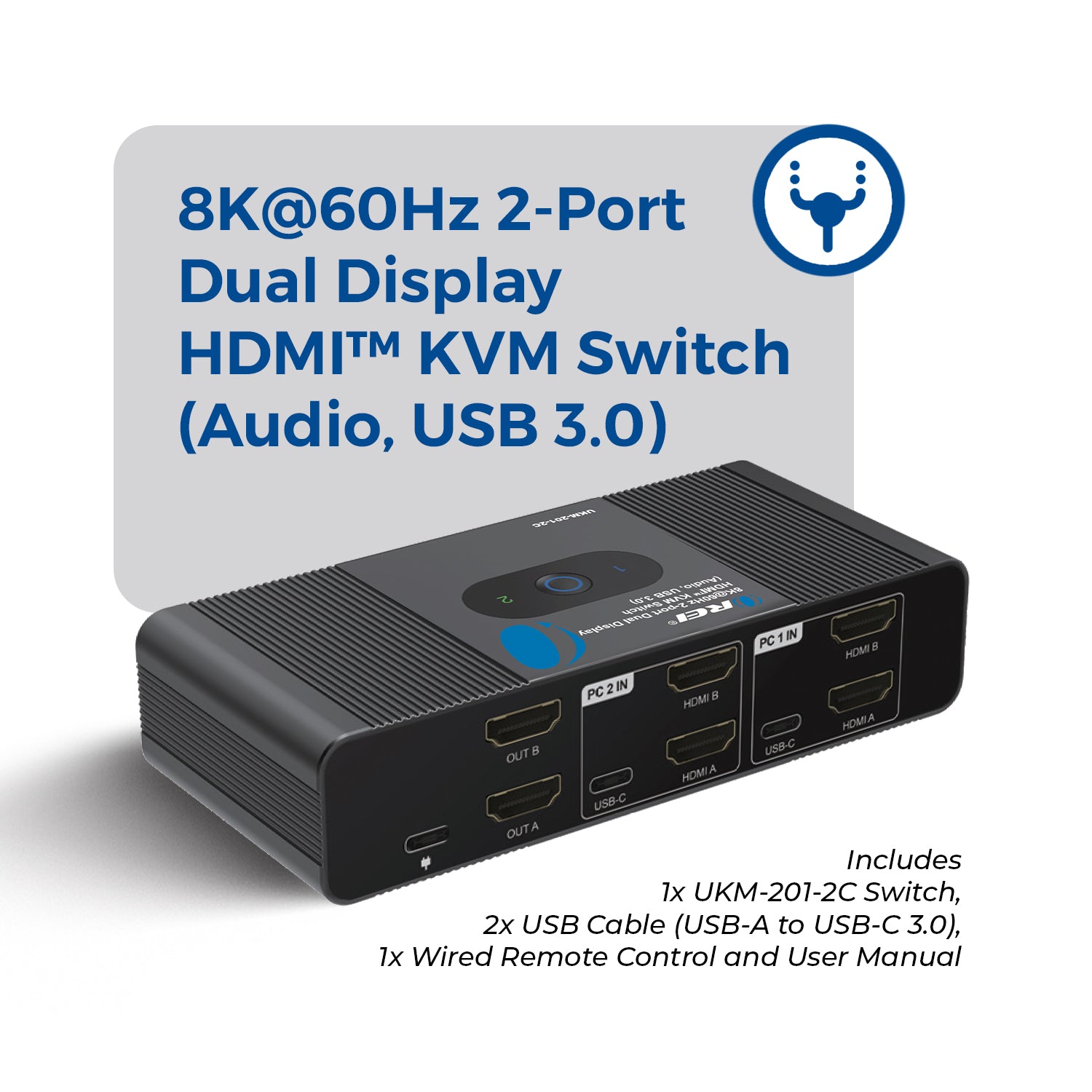 8K@60Hz 2-port Dual Display HDMI™ KVM Switch (Audio, USB 3.0) (UKM-201-2C)