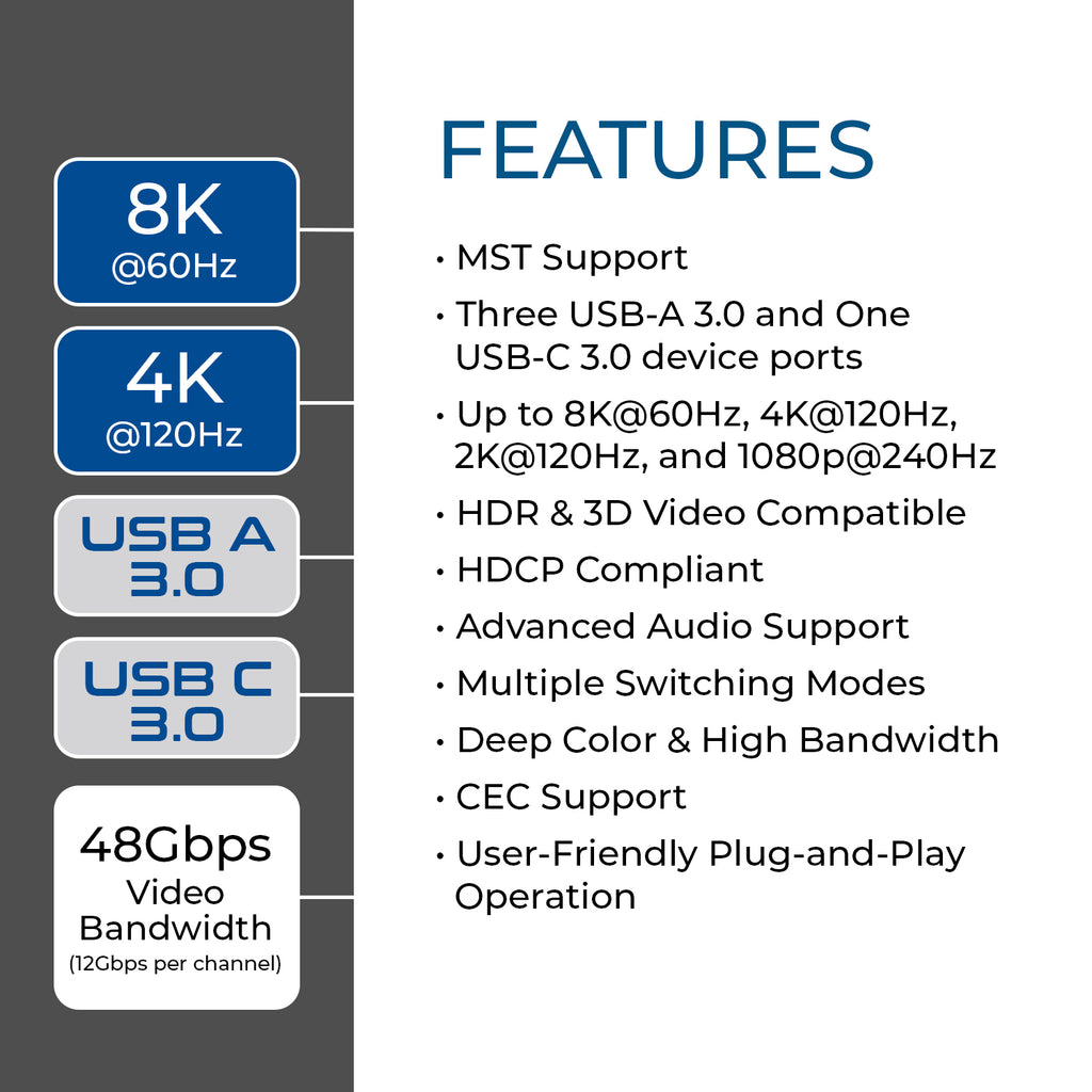 Switching between computers is simple via the top button or wired remote, ensuring smooth workflow transitions. Compact and built for advanced multi-display setups, it’s ideal for commercial workstations, creative studios, and high-efficiency home offices.