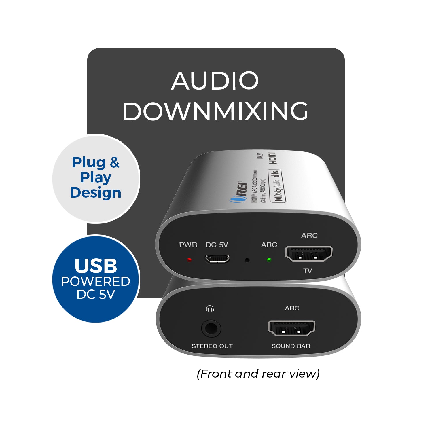 - Audio Down-mixing - Supports Dolby 5.1 and DTS 5.1 down-mixing to 2-channel stereo audio while maintaining 5.1 audio on the ARC output.