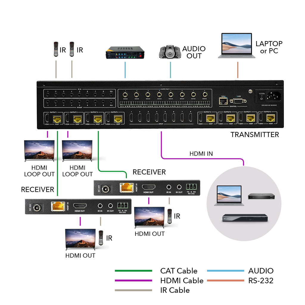 4K HDBaseT 8x8 HDMI™ Extender Matrix – 300ft (Cat6) (UHD88-EXB300-K)